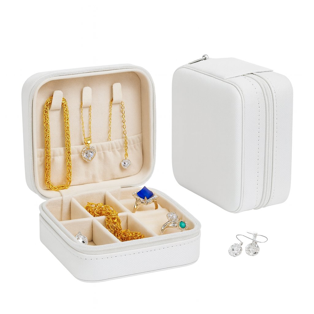 Elegantní šperkovnice S1348 v bílé barvě nabízí dokonalé spojení praktičnosti a moderního designu. Je ideální pro ženy, které chtějí mít své šperky přehledně uspořádané a zároveň chráněné před poškozením. Díky kompaktním rozměrům se snadno vejde do kabelky nebo kufru, takže se skvěle hodí na cestování.