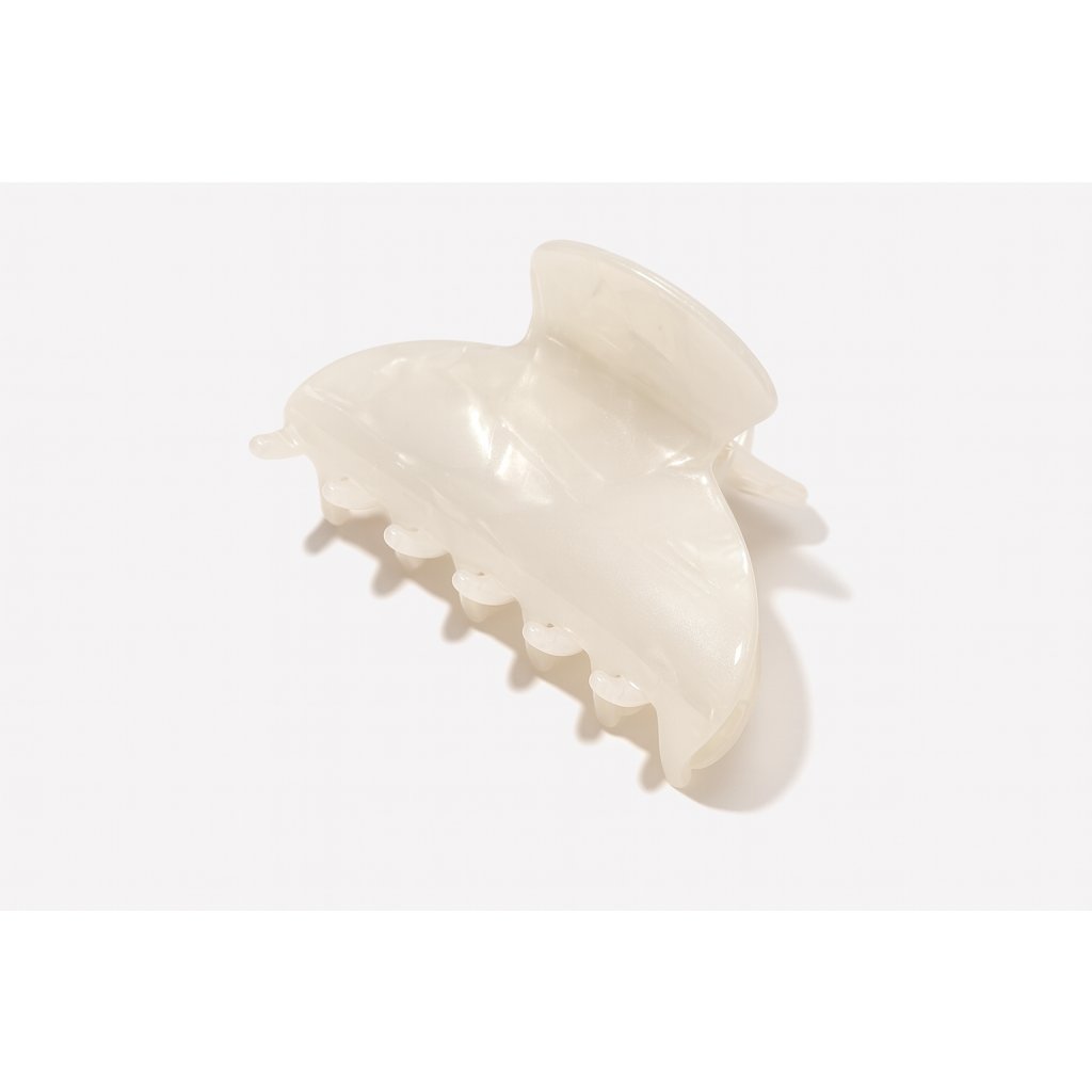 Tato bílá vlasová spona s jemným perleťovým leskem zaujme svým tvarem motýla a jednoduchou elegancí. Pevné zoubky zajišťují spolehlivé uchycení vlasů po celý den, ať už ji využijete na elegantní drdol nebo rychlé sepnutí vlasů během dne. Ideální pro každodenní nošení i slavnostní příležitosti.