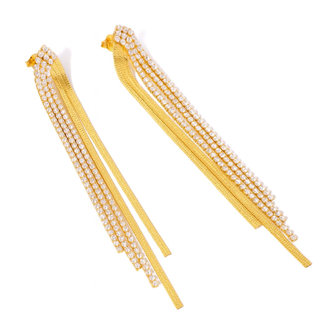Dlouhé třpytivé náušnice se zirkony a zlatými prameny S1252