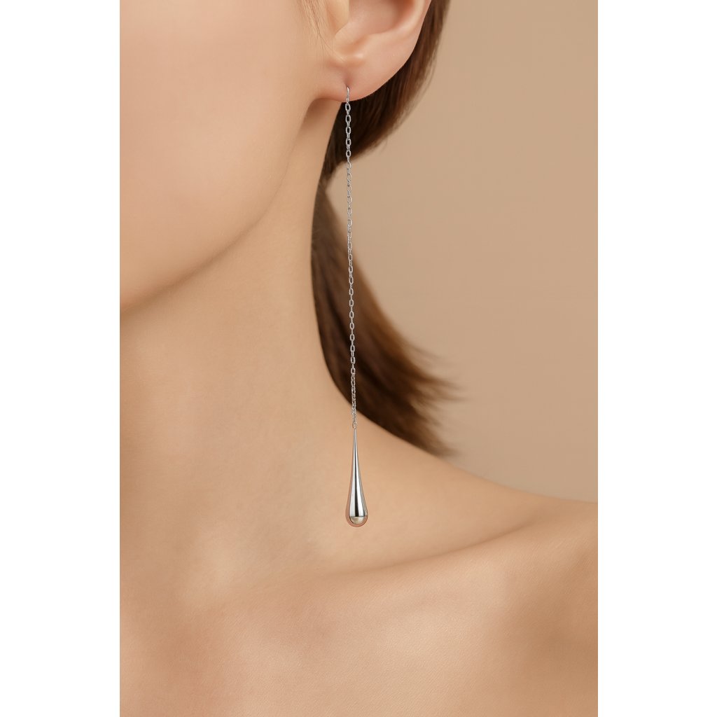 Dlouhé visací náušnice ve stříbrné barvě s kapkovitým zakončením S1226