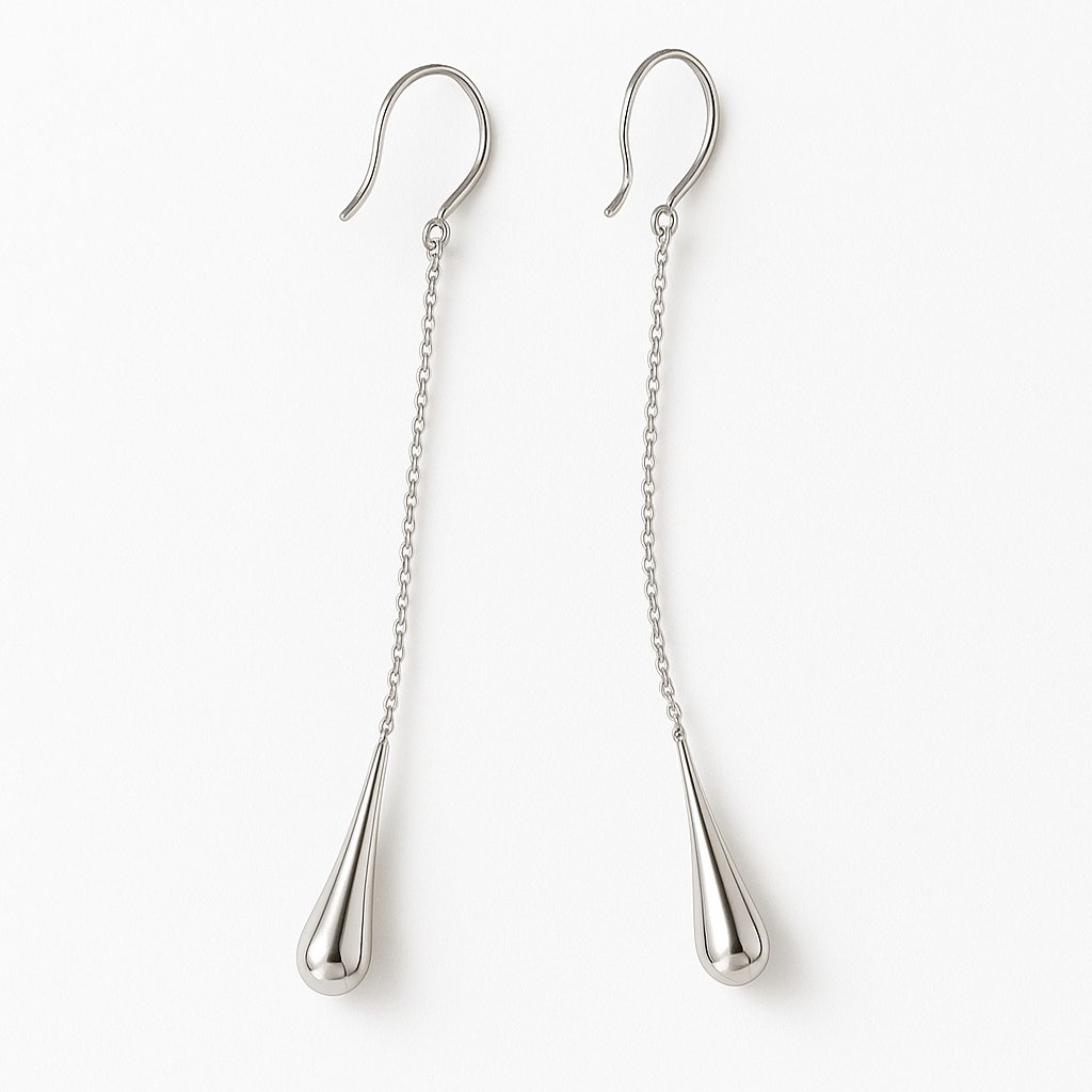 Moderní a nadčasové dlouhé náušnice ve stříbrné barvě jsou vyrobeny z kvalitní chirurgické oceli. Jejich štíhlý tvar, zakončený elegantní kapkou, jemně prodlužuje linii krku a dodává celkovému vzhledu nádech sofistikovanosti. Lehké a pohodlné na nošení, perfektní pro denní i večerní outfity.
