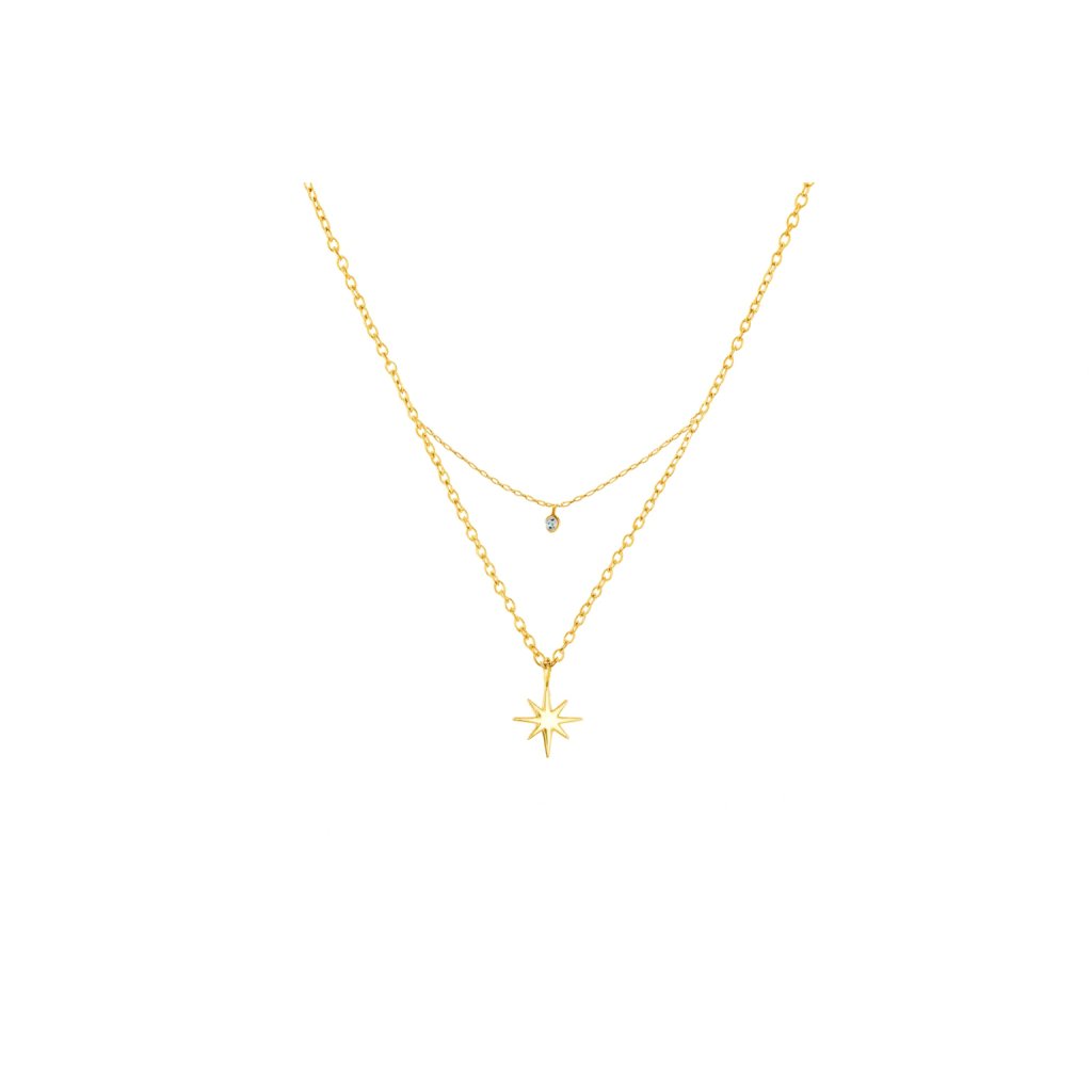 Dvouvrstvý náhrdelník se zirkonem a hvězdou ve zlatém tónu S1213
