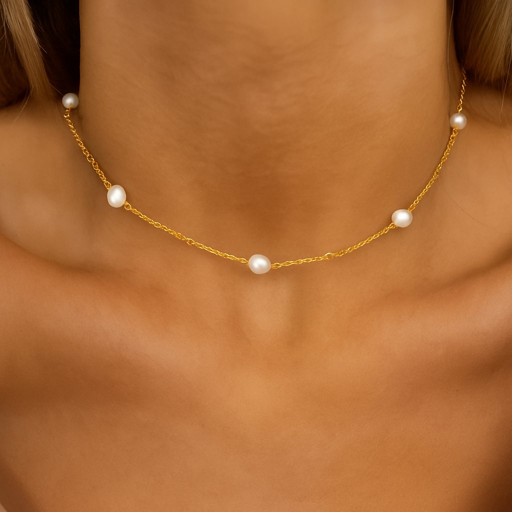 Tento jemný náhrdelník s pravidelně rozloženými drobnými perlami je dokonalým doplňkem pro každou ženu, která miluje jednoduchou eleganci. Decentní zlatý řetízek působí subtilně, ale přesto stylově. Skvěle se hodí jak ke každodennímu nošení, tak ke slavnostním příležitostem. Vyroben z odolné chirurgické oceli, která je šetrná k pokožce a odolná vůči vlhkosti a opotřebení.
