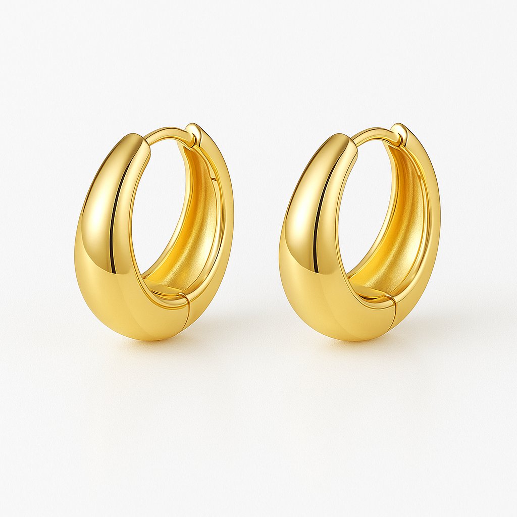 Tyto stylové kruhové náušnice ve zlaté barvě jsou nadčasovým doplňkem, který nikdy nevyjde z módy. Mají jemně zaoblený, hladký design, který se snadno kombinuje s dalšími šperky. Díky materiálu z chirurgické oceli jsou vhodné i pro citlivější uši a skvěle drží tvar i lesk.