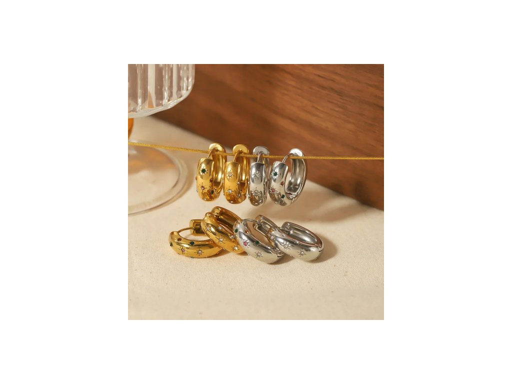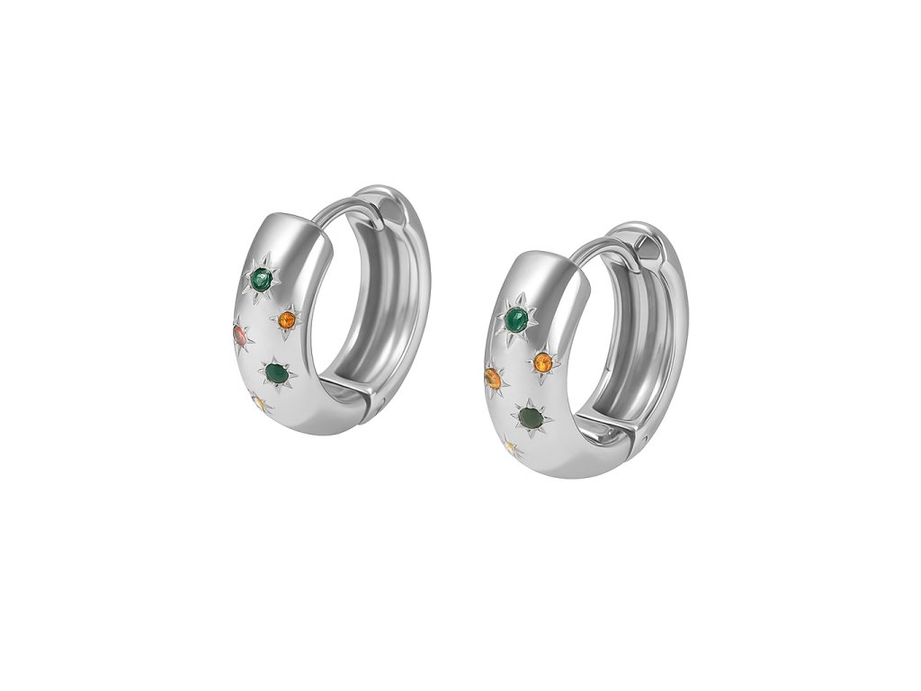 Tyto elegantní kruhové náušnice v lesklém stříbrném tónu z chirurgické oceli zaujmou svým moderním designem a jemným zdobením barevnými zirkony. Jsou skvělou volbou pro každou ženu, která miluje originální, ale nadčasové doplňky. Díky kvalitnímu provedení jsou hypoalergenní, odolné vůči vodě a vhodné pro dlouhodobé nošení bez ztráty lesku.