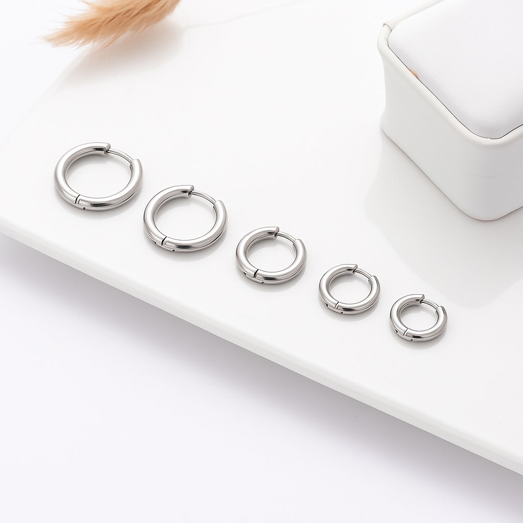 Klasické kruhové náušnice v elegantním stříbrném provedení jsou nadčasovým doplňkem pro každou příležitost. Vyrobeny z kvalitní chirurgické oceli, která vyniká vysokou odolností a dlouhou životností. Díky několika velikostem si snadno vyberete ty pravé, nebo je můžete vrstvit pro stylový efekt. Pohodlné zapínání zaručuje bezpečné nošení po celý den.