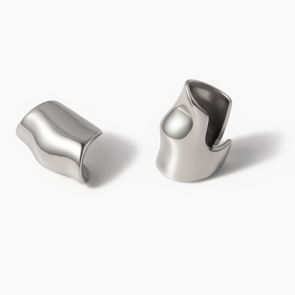 Tento moderní earcuff ve stříbrném tónu vyniká svým organickým, volně tvarovaným designem, který dodá každému outfitu jedinečný styl. Vyroben z chirurgické oceli, která zaručuje vysokou odolnost, stálost barvy a bezpečnost i pro citlivou pokožku. Earcuff se snadno nasazuje a pohodlně drží bez nutnosti propíchnutí ucha. Ideální jako samostatný výrazný šperk nebo doplněk k dalším náušnicím.