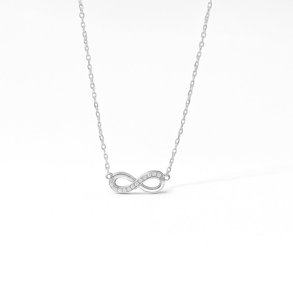Náhrdelník s přívěskem nekonečna a zirkony ve stříbrném tónu S1050