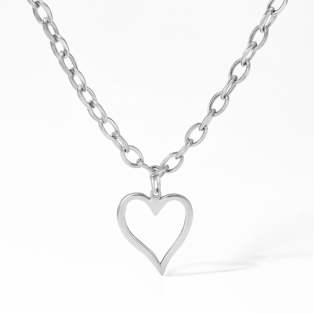 Objevte nadčasový šperk, který podtrhne vaši ženskost – náhrdelník s přívěskem otevřeného srdce ve stříbrném tónu. Tento jemný, ale výrazný doplněk je vyroben z kvalitní chirurgické oceli, což zaručuje vysokou odolnost, hypoalergenní vlastnosti a dlouhotrvající lesk.