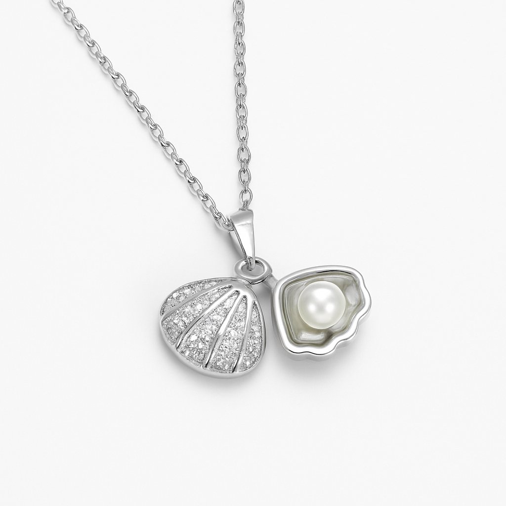 Tento okouzlující náhrdelník s motivem otevřené perlorodky přináší do vašeho stylu nádech romantiky a elegance. Přívěsek ve tvaru mušle je zdoben drobnými čirými zirkony a ukrývá perličku, která symbolizuje ženskost, čistotu a krásu.