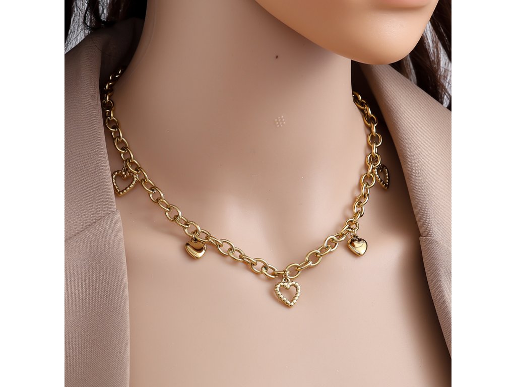 Představujeme vám náhrdelník se srdcovými přívěsky, který spojuje hravost s elegancí. Tento kvalitní náhrdelník je vyroben z chirurgické oceli a pokryt zlatem, což zajišťuje dlouhou životnost a odolnost vůči každodennímu opotřebení.