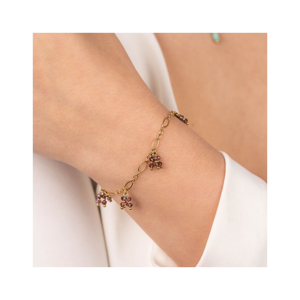 Představujeme vám náramek s fialovými korálky, který spojuje jedinečný design s veselou barevnou kombinací. Tento náramek je vyroben z chirurgické oceli a zdoben korálky v krásné fialové barvě, pokrytý zlatem, což zaručuje jeho trvanlivost a lesk.