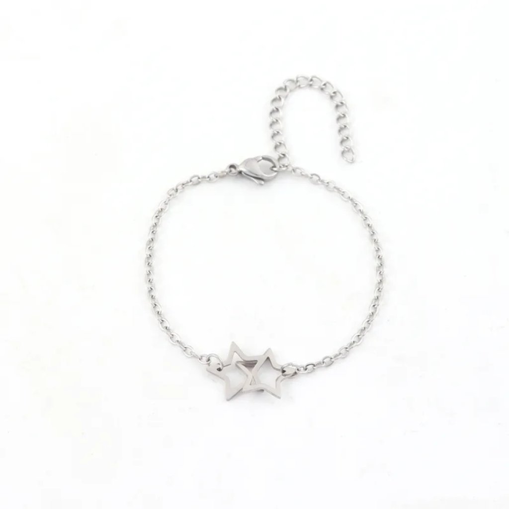 Tento stylový náramek s hvězdami dodá vašemu outfitu jemný, přitom moderní šmrnc. Propojené hvězdy symbolizují propojení a rovnováhu, ať už ho nosíte sami nebo jej darujete jako dárek. Lehký, pohodlný a přesto odolný – perfektní doplněk pro každou ženu, která miluje jednoduchý a nadčasový design.