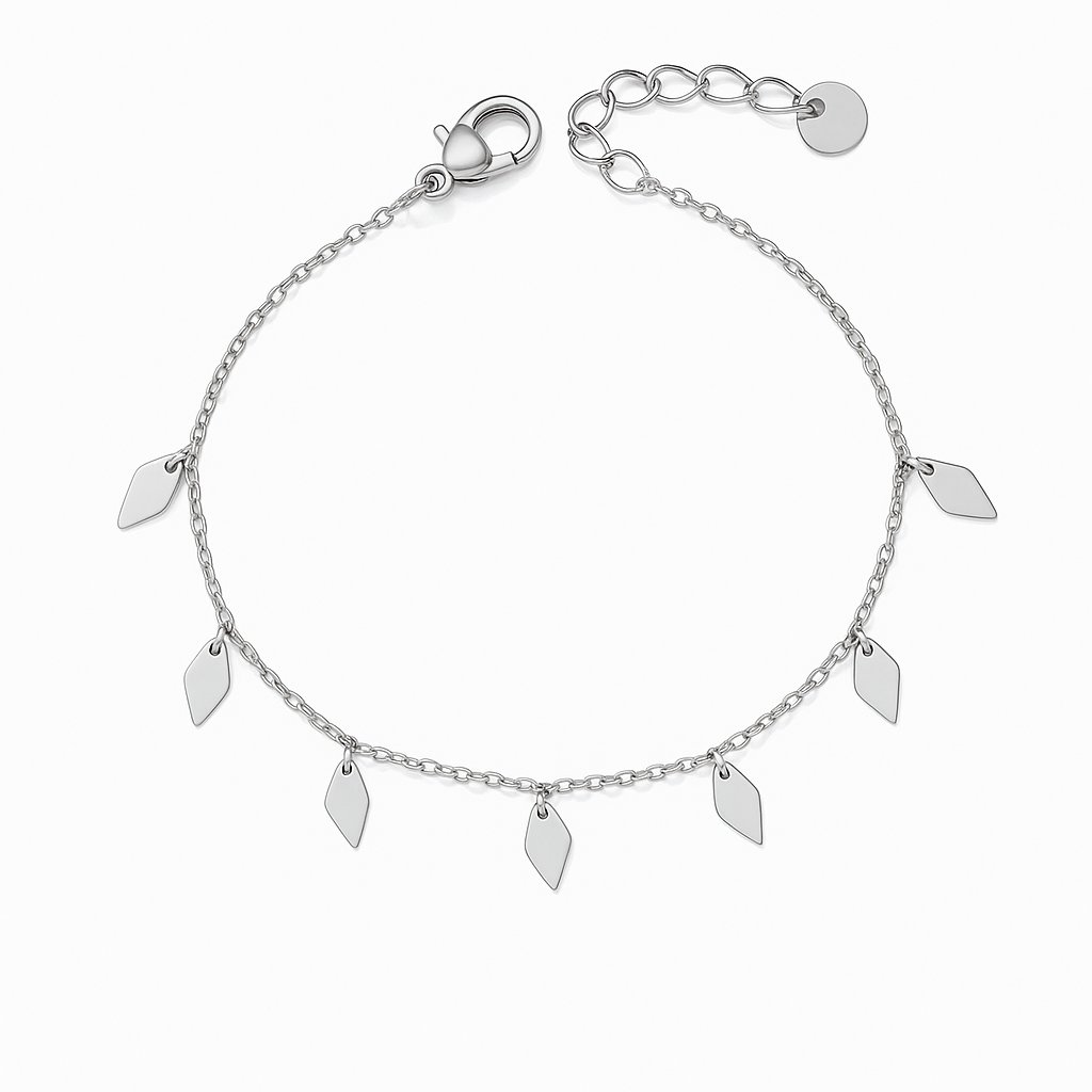 Náramek s přívěsky ve tvaru lístků z chirurgické oceli S1052