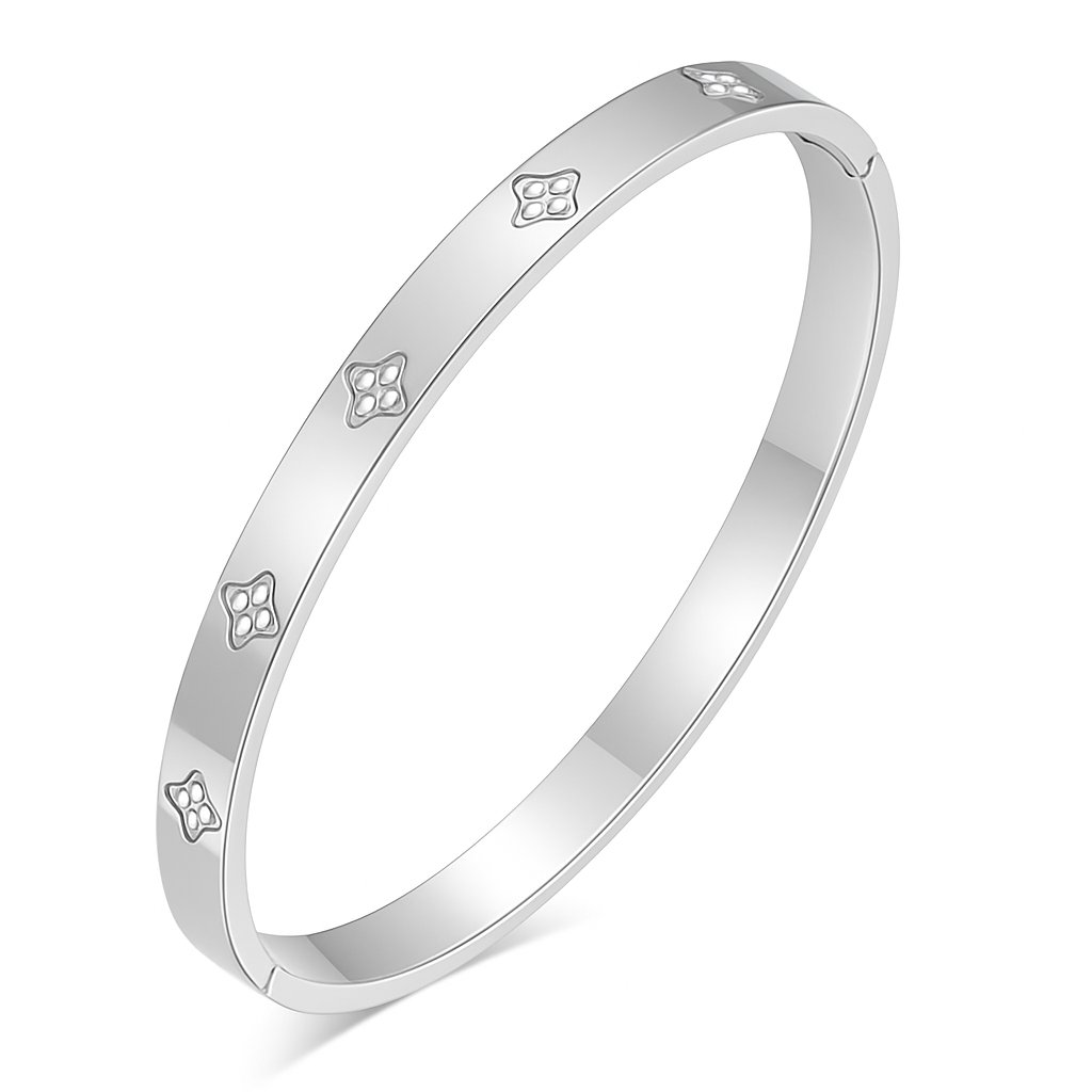 Tento sofistikovaný náramek z chirurgické oceli zaujme svým čistým designem a elegantními detaily. Lesklý povrch doplňují jemně ryté motivy ozdobené zirkony, které dodávají šperku jemný třpyt a moderní nádech. Díky pevnému provedení a jednoduchému zacvakávacímu zapínání se pohodlně nosí a hodí se ke každému outfitu od každodenního po společenský.