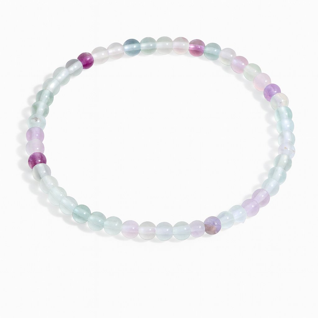 Náramek S1118 je tvořen korálky z přírodního fluoritu v kombinaci jemné fialové, zelené a modré. Každý korálek je originál, a díky průsvitnému provedení náramek působí velmi vzdušně a harmonicky.