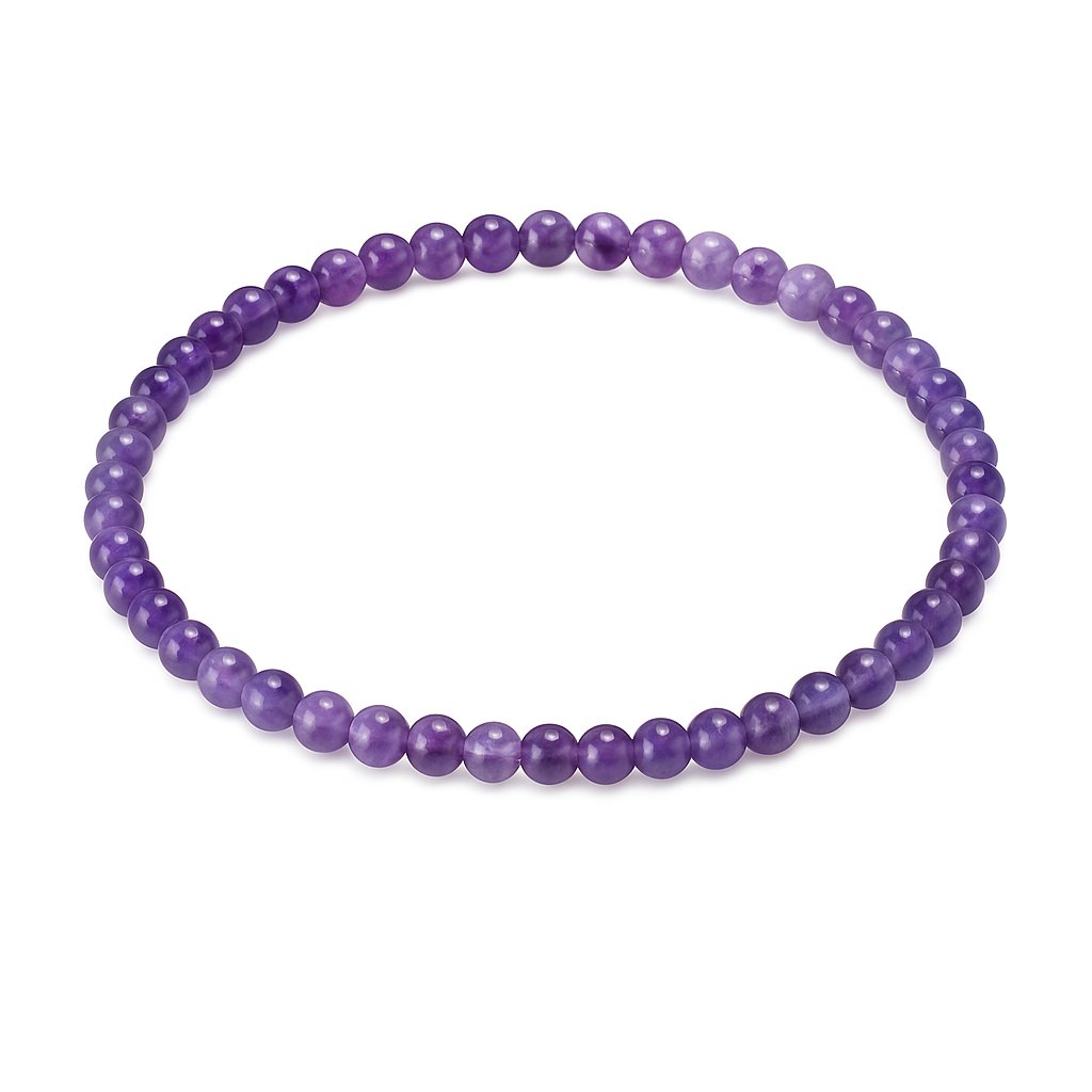 Objevte krásu přírodního ametystu v tomto jemném náramku tvořeném pravidelnými korálky o průměru 4 mm. Fialové odstíny kamene působí klidně, duchovně a zároveň luxusně. Díky elastickému provedení se náramek pohodlně navléká a přizpůsobí se zápěstí. Ideální pro samostatné nošení i kombinaci s dalšími náramky. Ametyst je ceněn pro své uklidňující účinky a tradičně symbolizuje rovnováhu a ochranu.