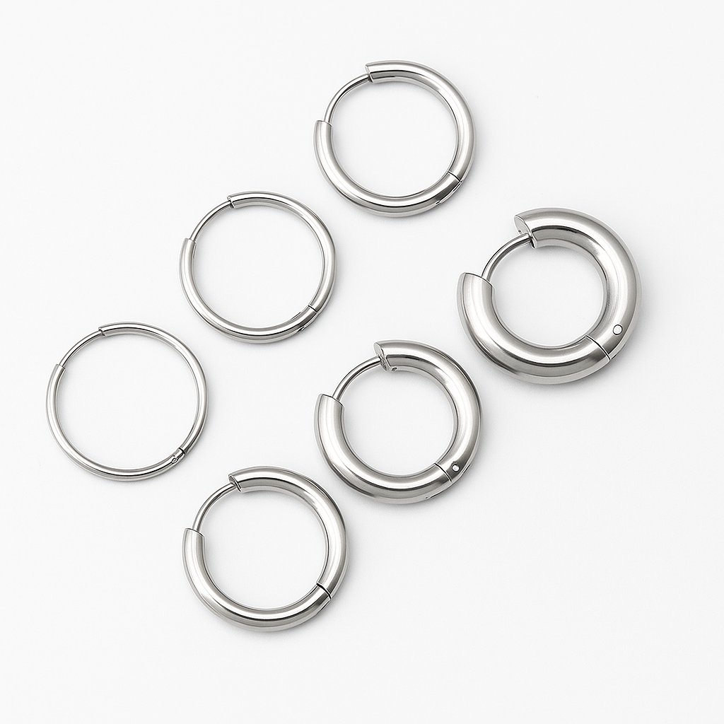 Objevte univerzální sadu kruhových náušnic z kvalitní chirurgické oceli, která je odolná, hypoalergenní a vhodná pro každodenní nošení. Set obsahuje několik velikostí kruhů – od subtilních až po výraznější – které můžete kombinovat podle příležitosti nebo nálady. Jednoduché a elegantní zpracování bez ozdob dává vyniknout čistému designu. Skvělé i jako dárek!