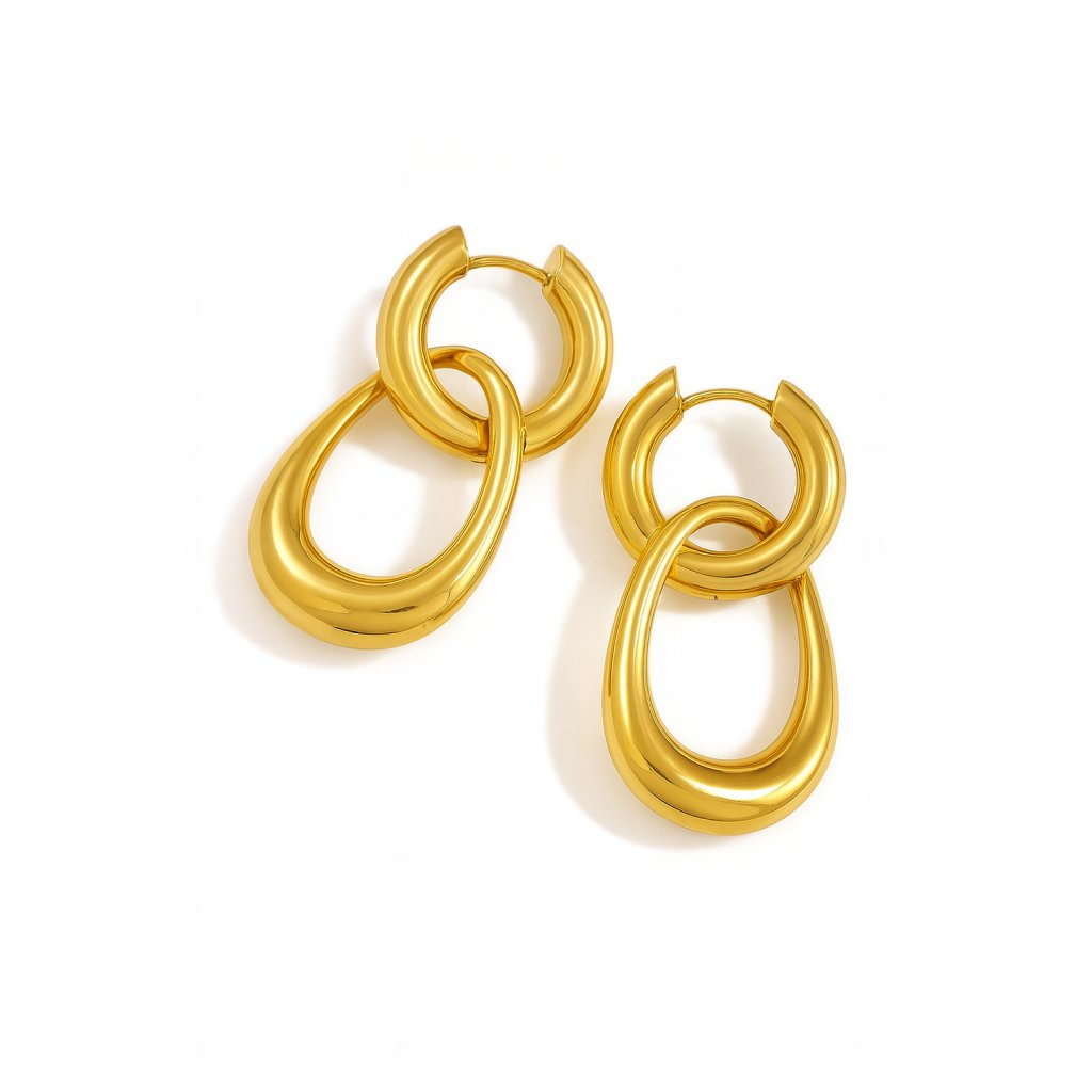 Objevte nadčasovou krásu s těmito výraznými náušnicemi ve zlatém tónu. Dvojitý kapkovitý design působí stylově a zároveň decentně, což z nich dělá ideální doplněk pro každodenní nošení i výjimečné příležitosti. Hladký povrch a precizní zpracování dodávají náušnicím luxusní vzhled. Díky své lehkosti a pohodlnému zapínání je budete ráda nosit po celý den.