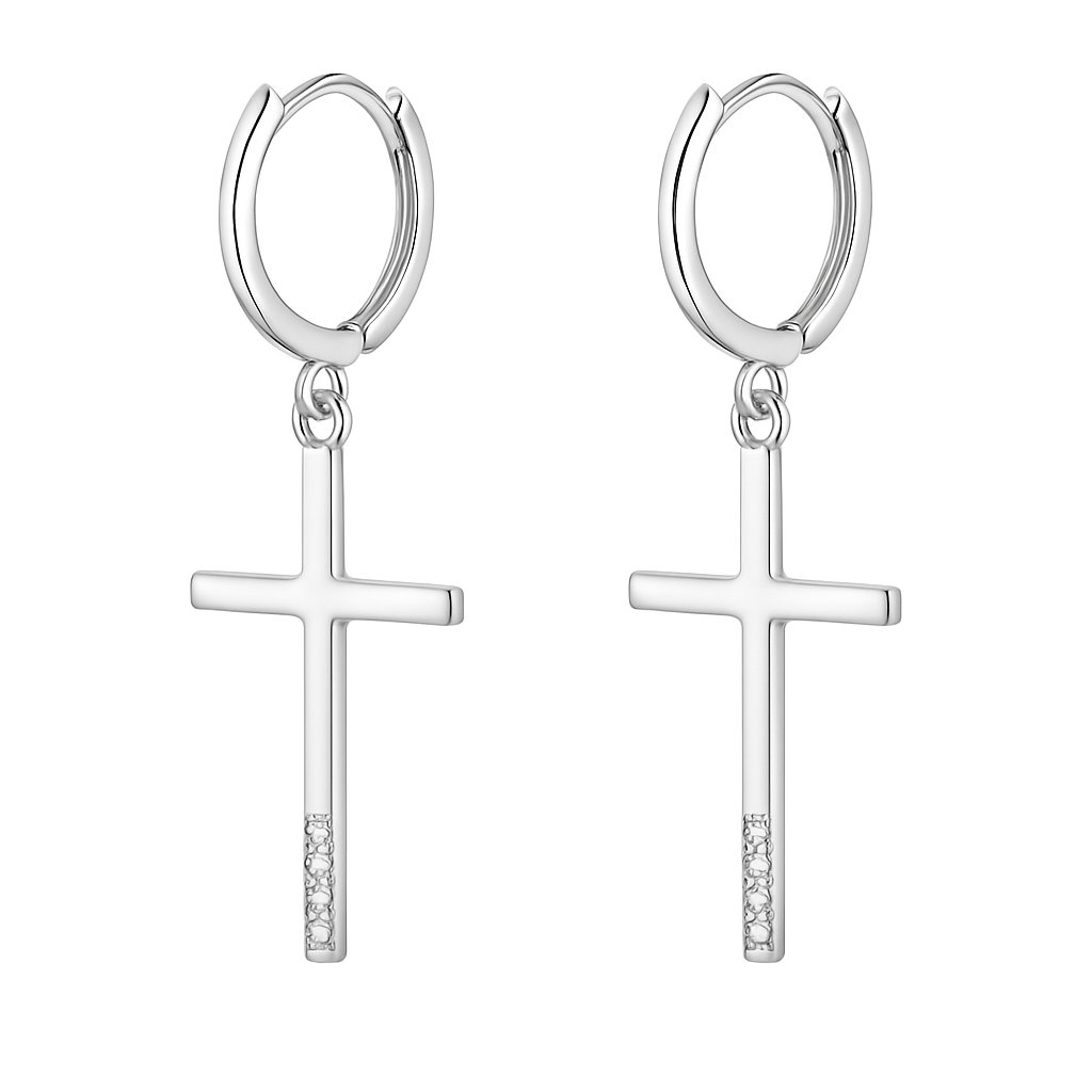 Tyto náušnice s křížkem jsou ideální volbou pro milovnice nadčasových šperků. Obě náušnice jsou identické a zdobené jemnými čirými zirkony, které dodávají lesk a eleganci. Díky jednoduchému provedení ze stříbrné chirurgické oceli jsou vhodné jak pro běžné nošení, tak pro slavnostní příležitosti.