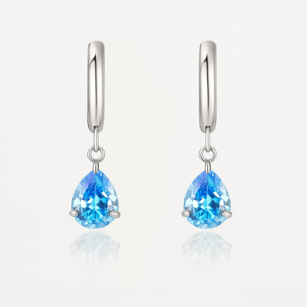 Třpytivé náušnice s modrými kapkovitými zirkony vyniknou svým svěžím vzhledem a minimalistickým provedením. Stříbrné obruče doplňují výrazné kameny, které připomínají kapky vody a dodávají šperku nádech elegance i originality. Perfektní doplněk pro každodenní nošení i slavnostní chvíle.