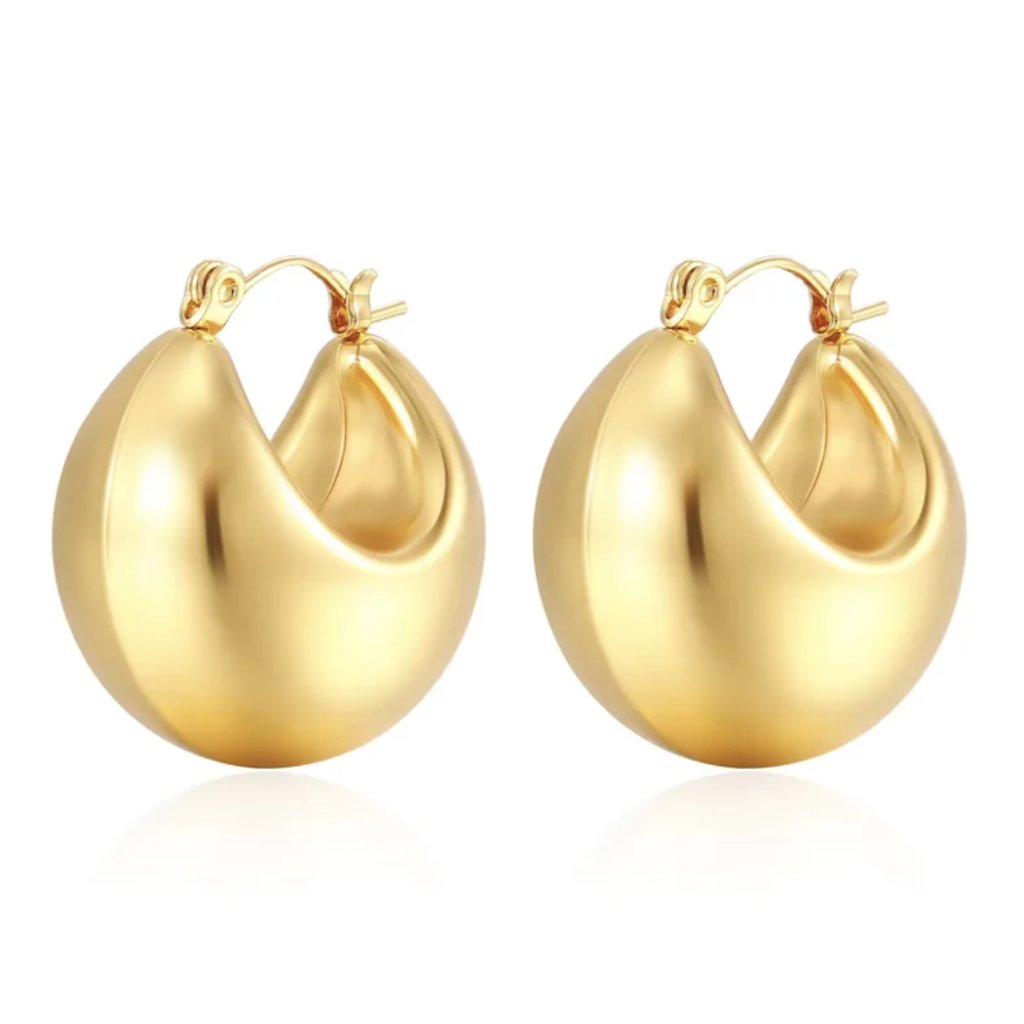 Tyto výrazné náušnice v hladkém zaobleném designu ve zlaté barvě dodají vašemu outfitu nádech luxusu a originality. Díky preciznímu zpracování zaručují pohodlné nošení po celý den a snadno je sladíte jak s elegantním, tak i volnočasovým stylem. Ideální volba pro ženy, které chtějí vyniknout s jednoduchým, ale nepřehlédnutelným šperkem.