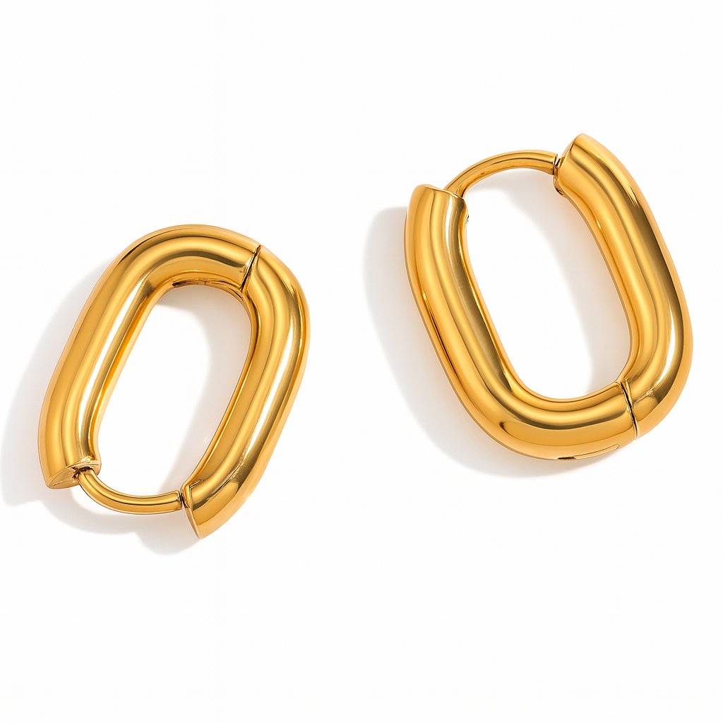 Tyto oválné náušnice ve zlatém provedení představují spojení elegance a moderního minimalismu. Jejich výrazný, ale jemně zaoblený tvar působí sebevědomě, a přesto elegantně. Jsou ideální pro ženy, které chtějí dodat svému outfitu stylový akcent.