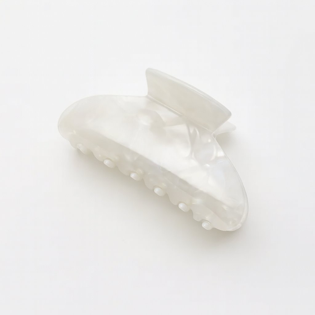 Tato perleťová vlasová spona kombinuje jednoduchost s elegancí. Je vyrobena z kvalitního plastu s efektem přírodní perleti, který se jemně leskne na světle. Díky svému pevnému uchopení je ideální pro sepnutí delších vlasů do drdolu nebo polovičního účesu. Skvěle se hodí pro běžné nošení, do práce i na procházku.