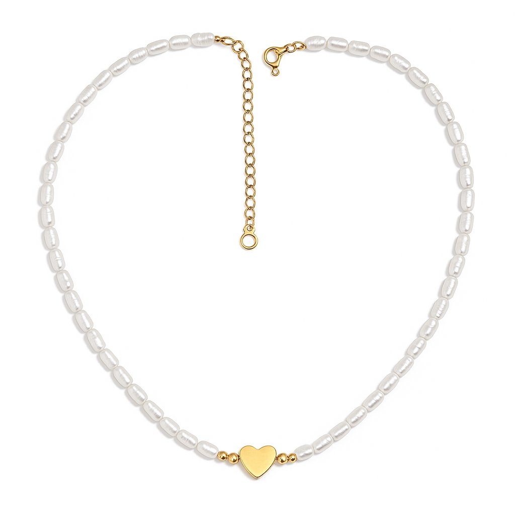 Perlový náhrdelník se zlatým srdíčkem S1122