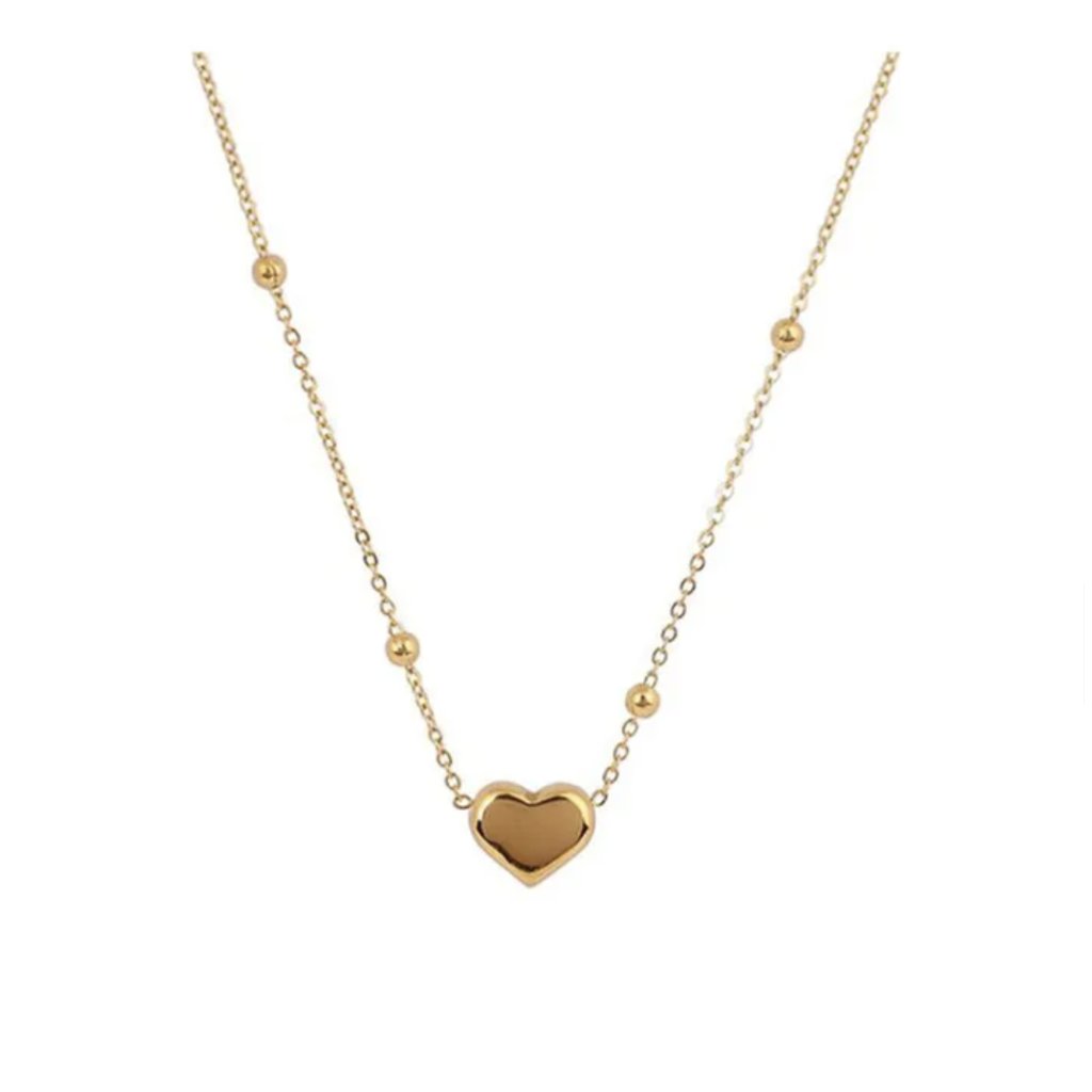 Stylový náhrdelník s decentním přívěskem ve tvaru srdce doplněný o drobné korálky na řetízku zaujme svojí jednoduchostí a elegancí. Ideální k vrstvení nebo jako samostatný šperk pro minimalistický vzhled.
