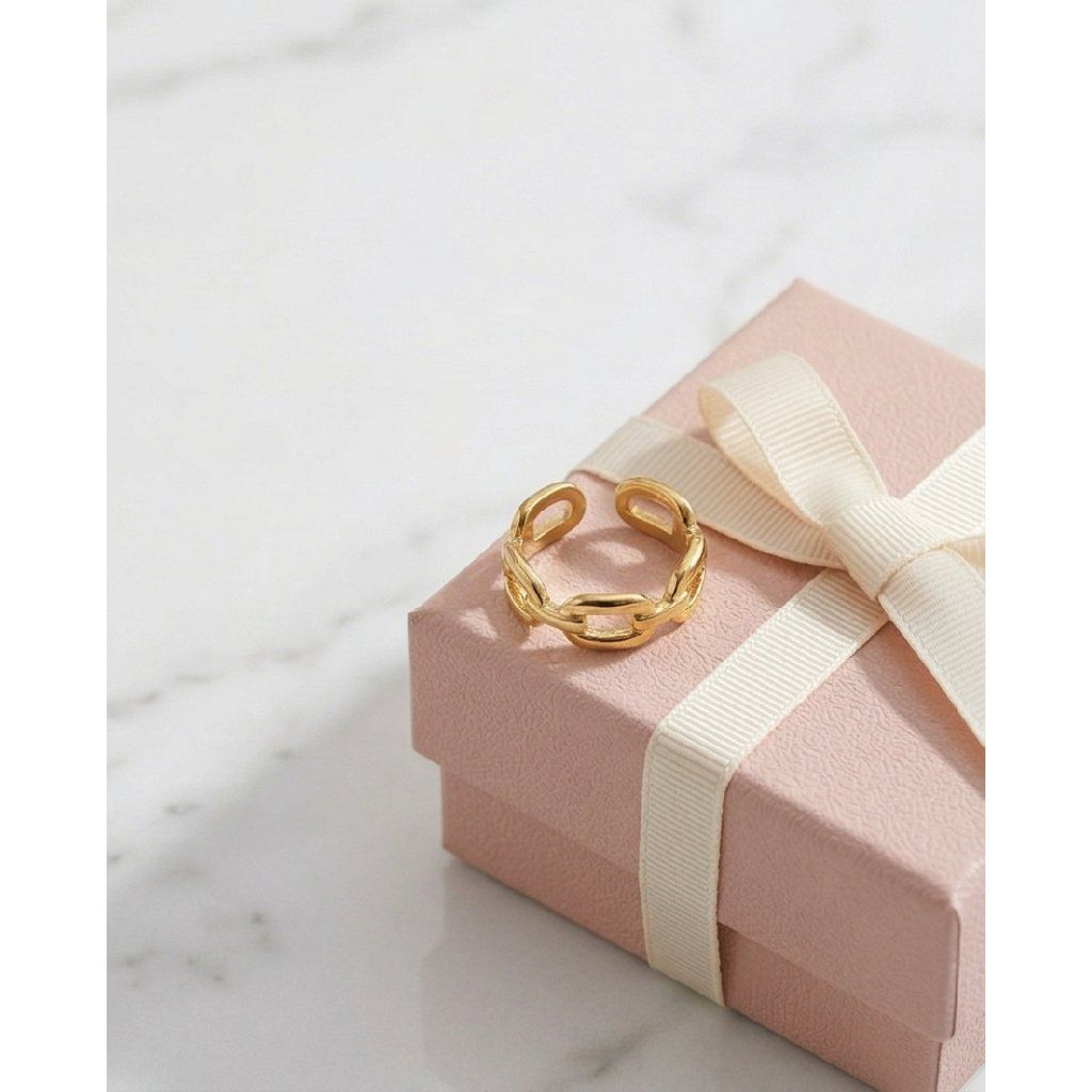Představujeme vám pozlacený prsten, vyrobený z kvalitní chirurgické oceli a pokrytý 18karátovým zlatem. Tento prsten má rozměry 1,6 x 2 cm a je nastavitelný, což zaručuje pohodlné nošení a přizpůsobení různým velikostem prstů.