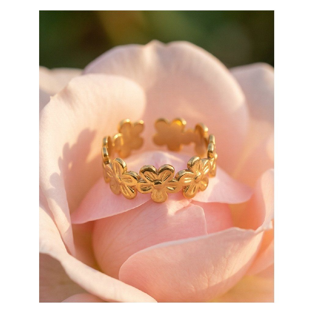 Představujeme vám pozlacený prsten Květiny, vyrobený z kvalitní chirurgické oceli a pokrytý 18karátovým zlatem. Tento prsten je nejen krásně zdobený květinovým motivem, ale také praktický díky svému nastavitelnému designu.