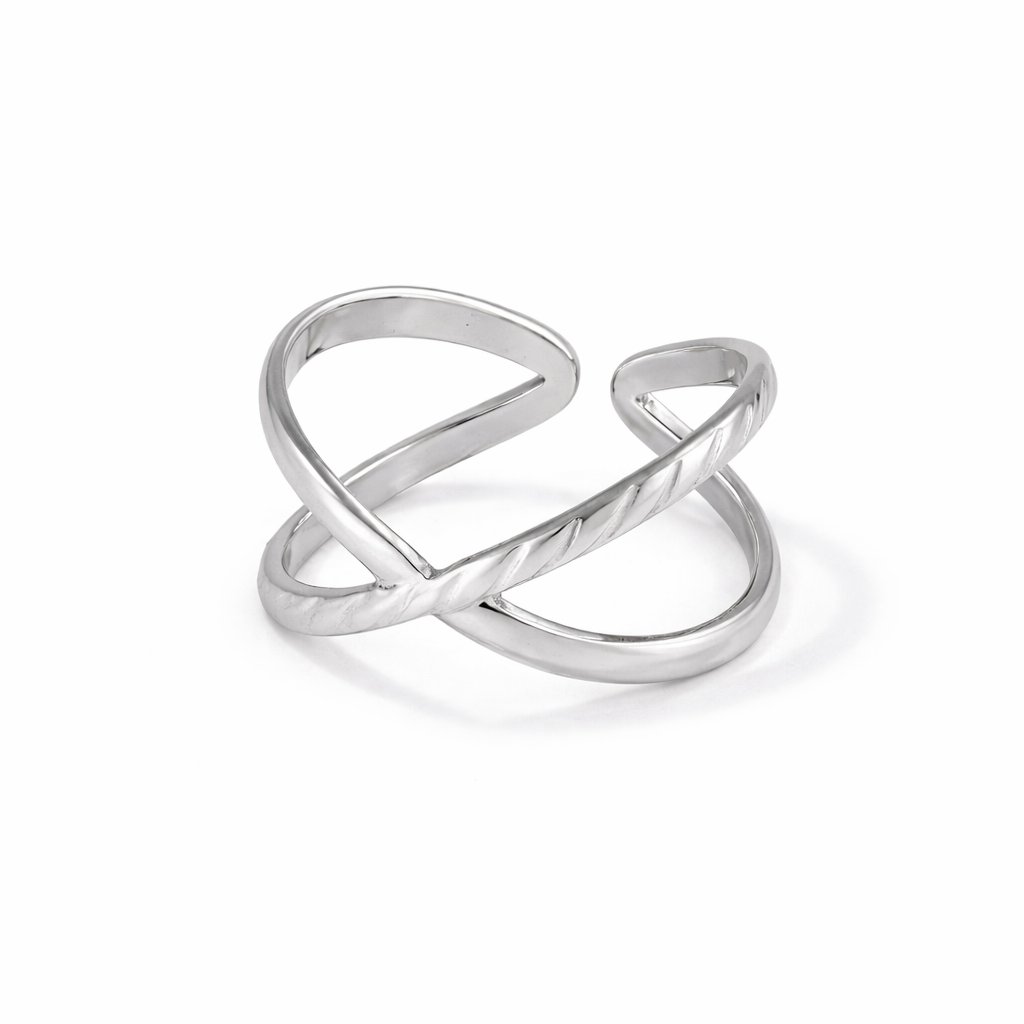 Prsten s překříženým designem ve stříbrném tónu S1403