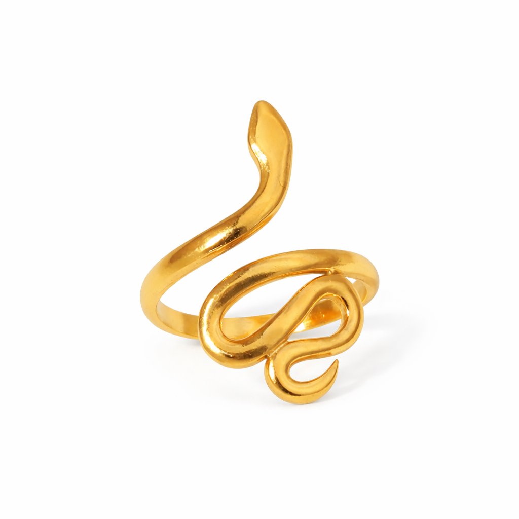 Elegantní a zároveň výrazný prsten S1428 je inspirován motivem hada, který symbolizuje sílu, transformaci a originalitu. Plynulé linie a lesklý zlatý povrch vytvářejí moderní šperk, který se stane dominantou každého stylingu. Otevřený, nastavitelný tvar zajišťuje pohodlné nošení a přizpůsobení velikosti prstu. Prsten je ideální volbou pro ženy, které se nebojí vyniknout a hledají jedinečný doplněk pro každodenní i večerní nošení.