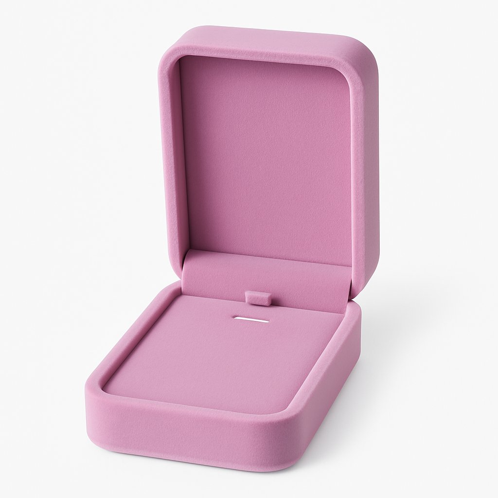 Vnitřní prostor je navržen tak, aby dokonale držel řetízek, přívěsek nebo jemný šperkový set. Krabička je tak perfektní nejen pro prodej, ale i pro dárkové balení — zákazníkům působí exkluzivním dojmem a zvýrazní hodnotu šperku.