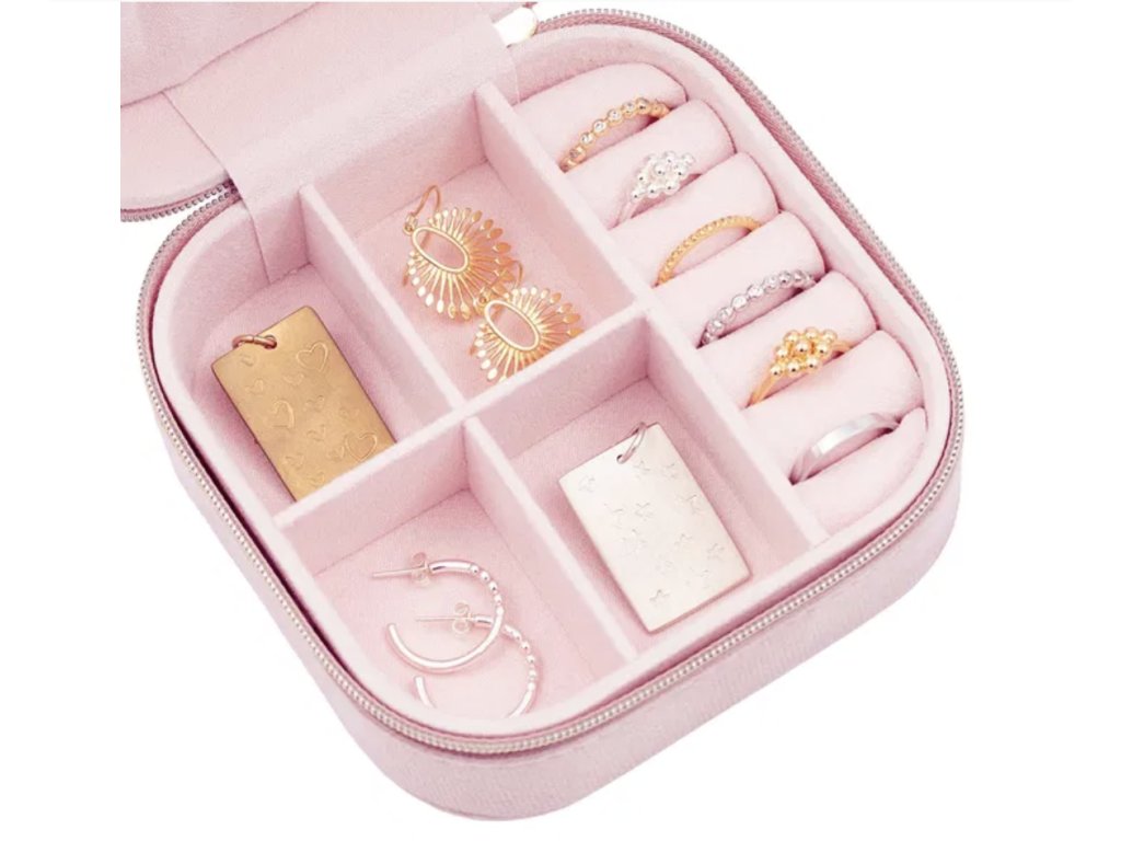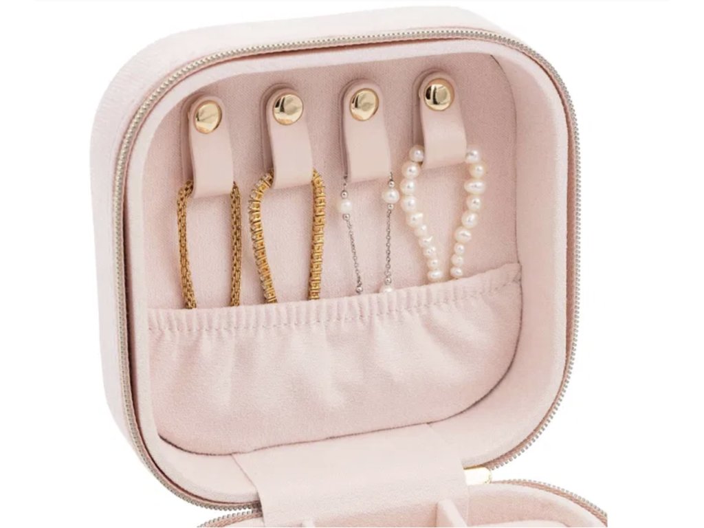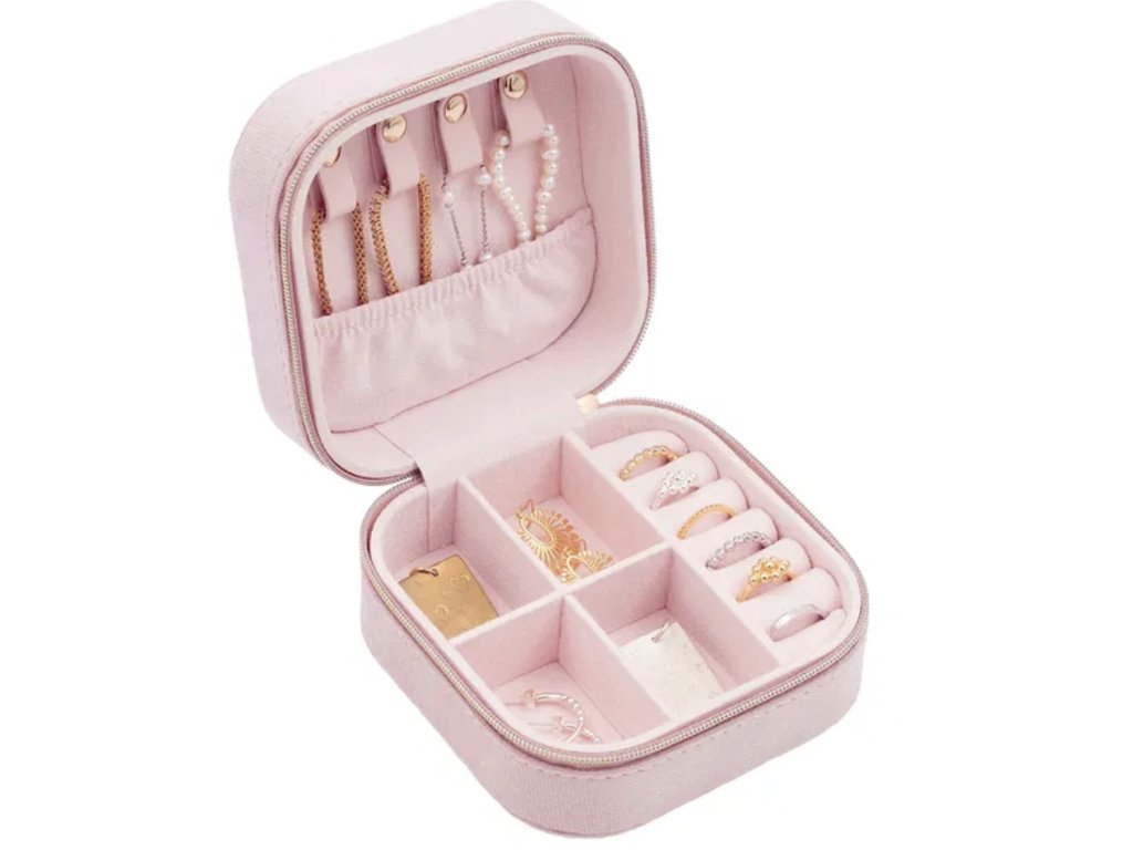 Naše šperkovnice v růžové barvě nabízí elegantní design s odolnými zipy a zdobením v tlumené zlaté. Kombinuje styl s praktičností a je perfektní pro cestování i každodenní použití.
