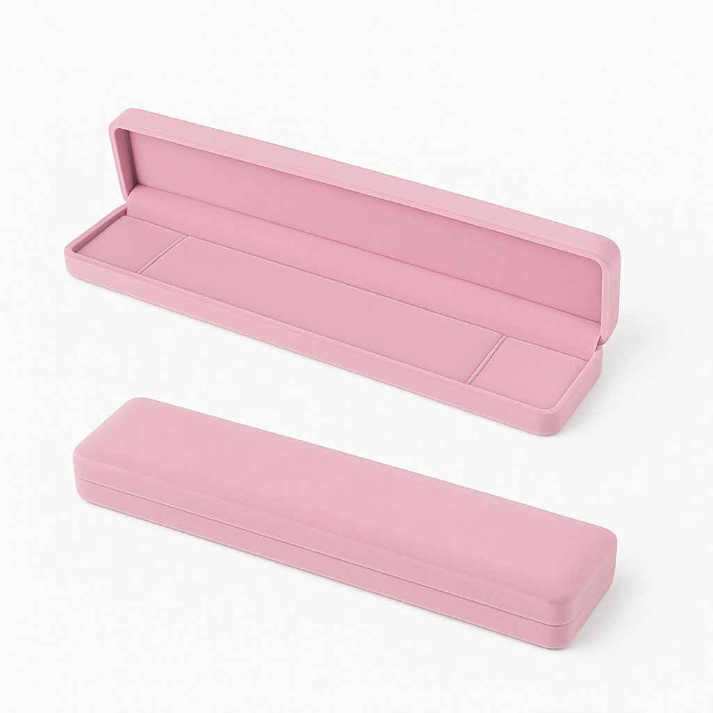 Dlouhá sametová šperkovnice S1354 je perfektní volbou pro uložení a prezentaci řetízků, jemných náramků nebo minimalistických setů. Je vyrobena z kvalitního velvet materiálu, který působí luxusně a zároveň poskytuje šperku ochranu před poškrábáním a poškozením.