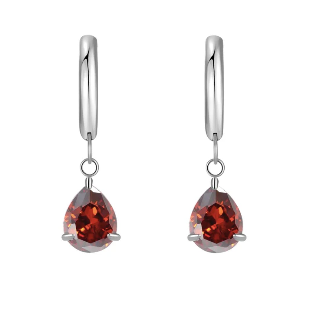 Tyto náušnice kombinují jemné stříbrné obroučky s výrazným červeným zirkonem ve tvaru kapky, který dodává šperku elegantní a ženský vzhled. Perfektní volba pro večerní akce, oslavy i jako decentní doplněk k elegantnímu outfitu. Díky použití kvalitního materiálu jsou vhodné i pro citlivé uši.