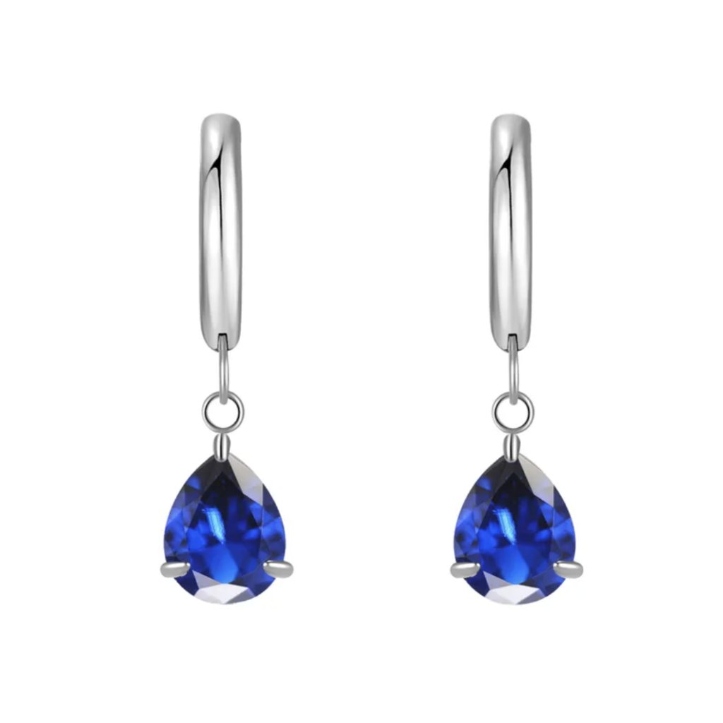 Stříbrné náušnice s modrým kapkovitým zirkonem S1177
