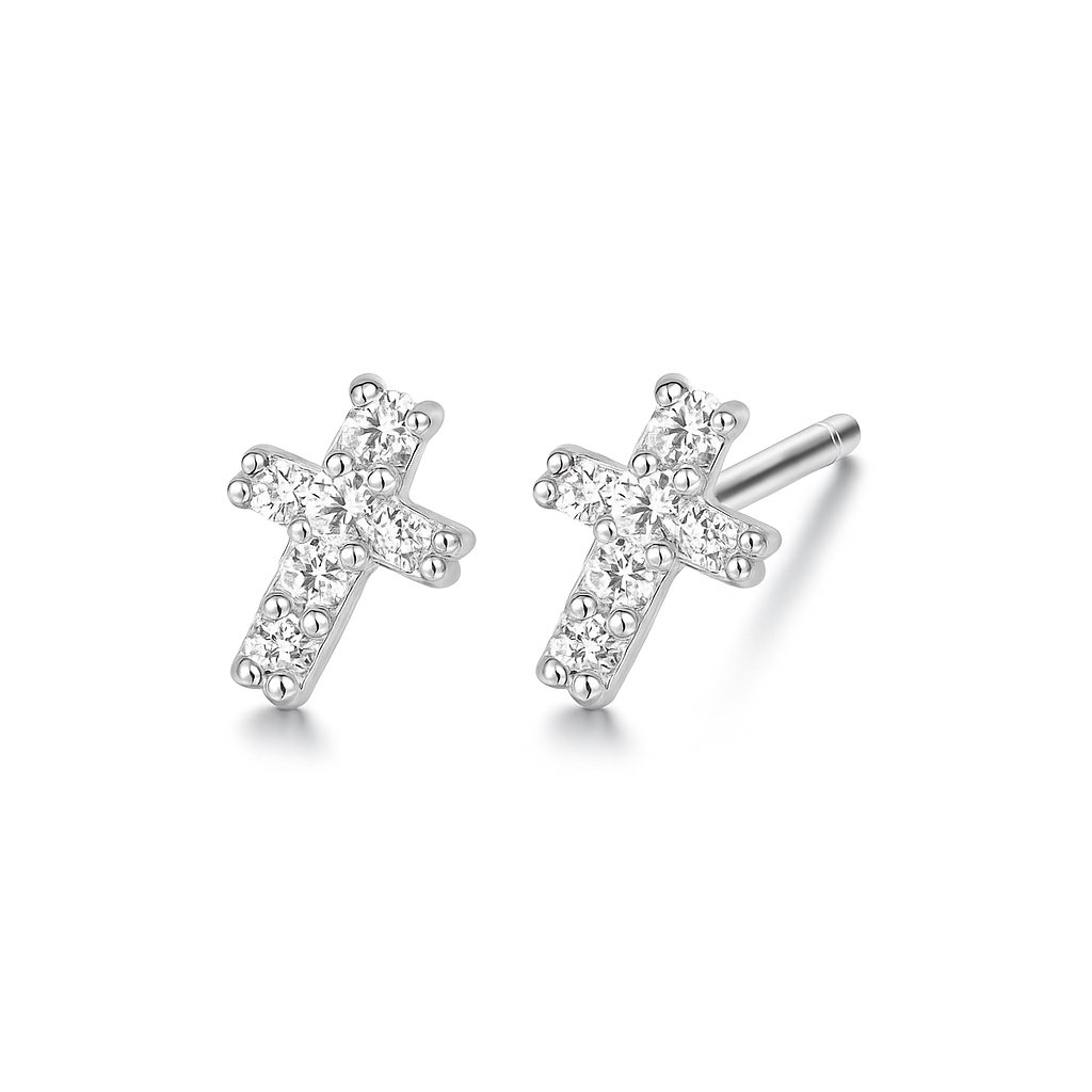 Stříbrné náušnice ve tvaru křížku se zirkony S1339