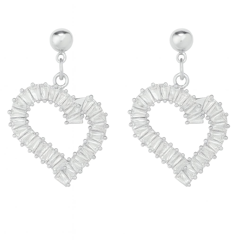 Elegantní visací náušnice ve tvaru srdce rozzáří každý outfit díky precizně broušeným zirkonům, které vytvářejí okouzlující lesk při každém pohybu. Stříbrný tón dodává šperku univerzální vzhled, který se hodí jak k večerním šatům, tak k běžnému dennímu outfitu. Ideální volba pro každou příležitost i jako dárek.
