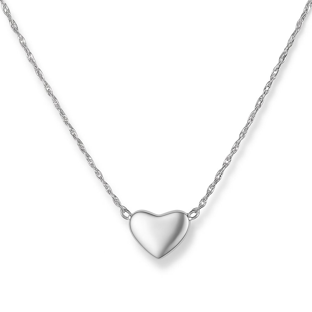 Tento jemný náhrdelník z chirurgické oceli se stříbrným lesklým přívěskem ve tvaru srdce je ztělesněním jednoduchosti a elegance.