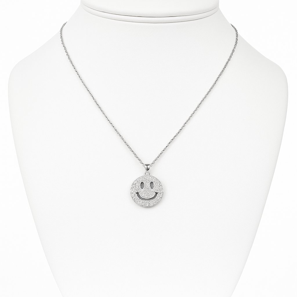 Stříbrný náhrdelník se smajlíkem posetým zirkony S1234