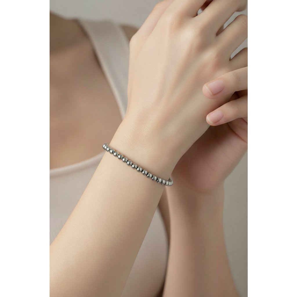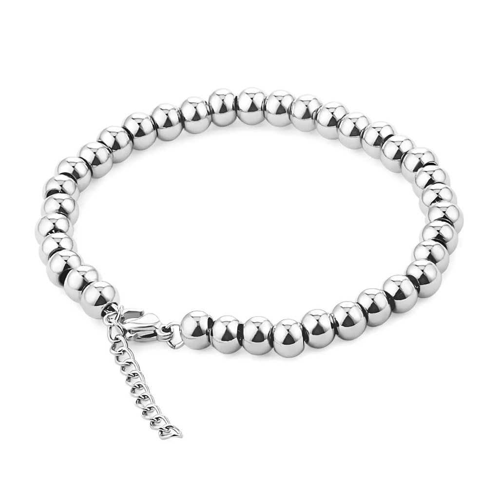 Představujeme vám stříbrný náramek s korálky, který kombinuje jednoduchý design s kvalitními materiály. Tento náramek je vyroben z chirurgické oceli a má hladké korálky, které se nádherně lesknou.