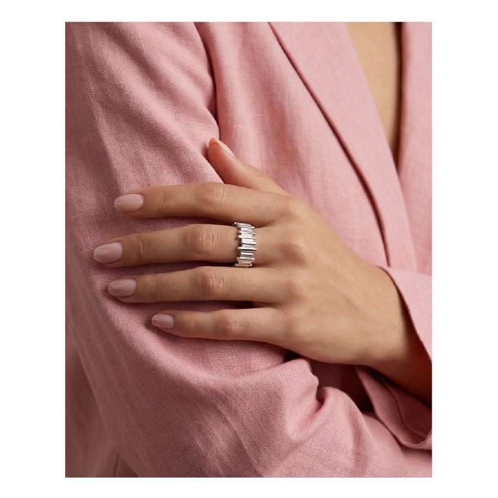 Tento elegantní prsten zaujme svým originálním článkovým designem, který připomíná segmenty hodinkového pásku. Díky nastavitelnému otevřenému provedení se snadno přizpůsobí většině velikostí prstů. Je vyroben z odolné chirurgické oceli ve stříbrném tónu, což zajišťuje dlouhou životnost a minimální nároky na údržbu. Perfektní volba pro ty, kteří hledají minimalistický a přitom nápaditý šperk.