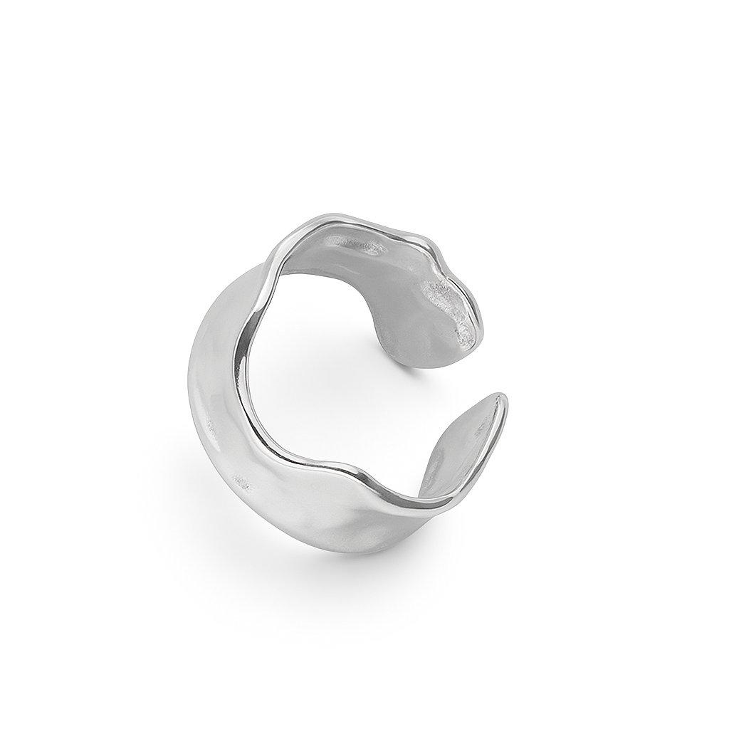 Tento jedinečný prsten zaujme svým nepravidelným vlnkovaným designem, který působí moderně a organicky zároveň. Vyroben z kvalitní chirurgické oceli, je odolný proti opotřebení i korozi. Díky otevřenému tvaru je prsten mírně nastavitelný a pohodlně se přizpůsobí různým velikostem prstů. Ideální pro každodenní nošení nebo jako decentní doplněk ke slavnostnímu outfitu.