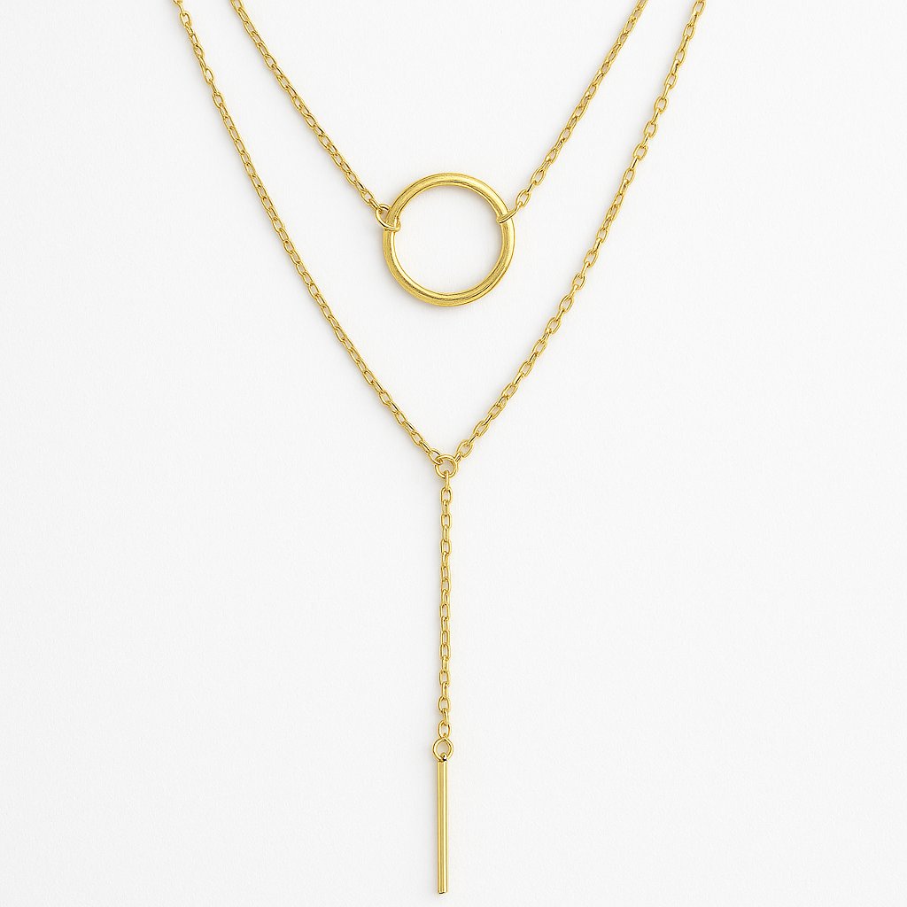 Vrstvený náhrdelník s kruhovým přívěskem a tyčinkou ve zlatém tónu S1198