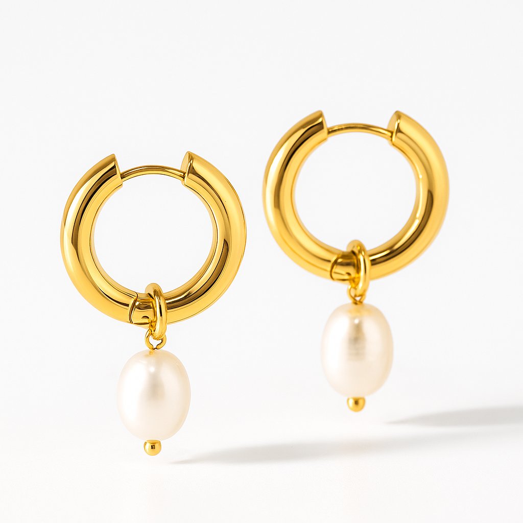 Náušnice, které ztělesňují klasickou eleganci – zlaté kruhy s decentní zavěšenou perličkou. Jejich jemný lesk a výrazný tvar zaujmou na první pohled. Díky chirurgické oceli jsou nejen krásné, ale i odolné a vhodné pro každodenní nošení. Perla dodává náušnicím romantický nádech a nadčasový styl, který perfektně doplní jakýkoliv outfit.