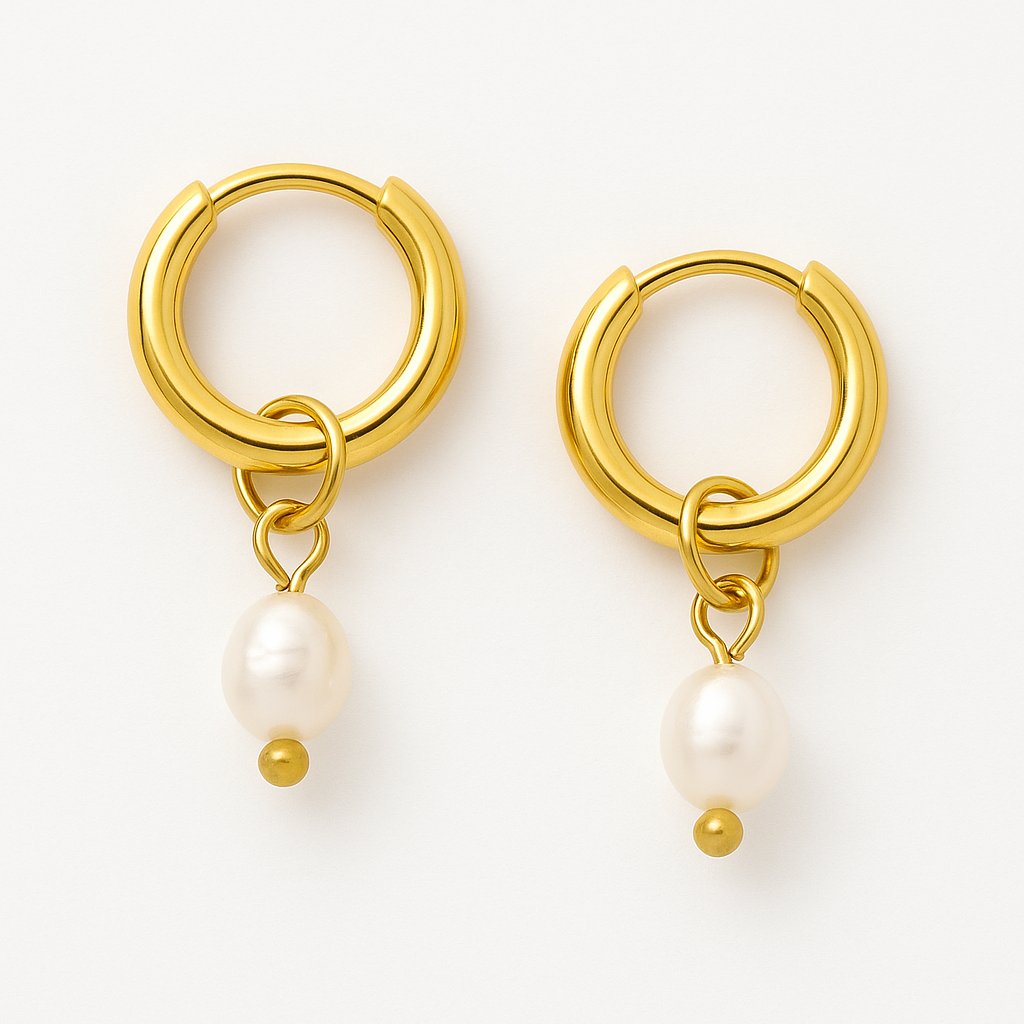 Zlaté náušnice ve tvaru kroužků s jemným perlovým přívěskem vám nabízejí dvě možnosti nošení. Perly lze jednoduše odepnout, čímž získáte minimalistické kroužky – ideální řešení pro variabilní styling.