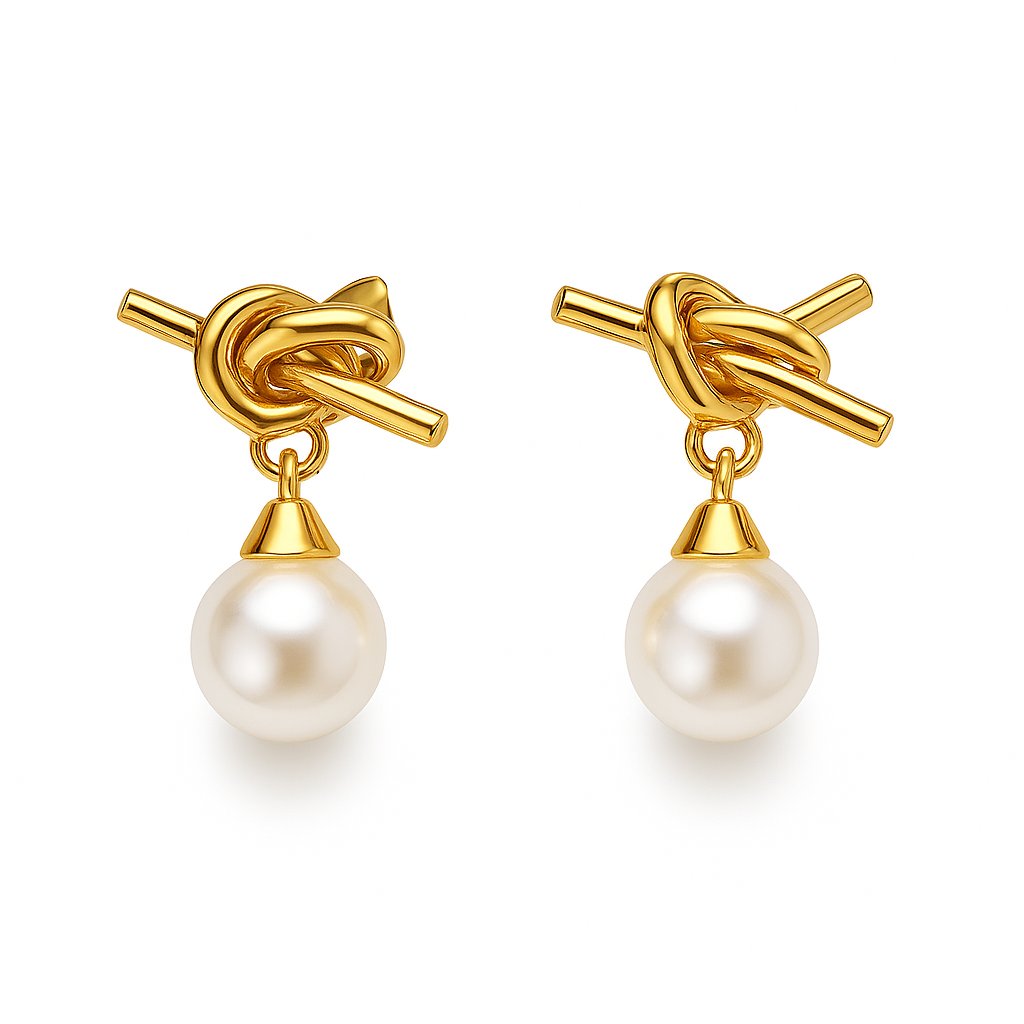 Objevte jedinečný šarm těchto náušnic, které spojují moderní design s klasickou elegancí. Zlatý uzel symbolizuje spojení a sílu, zatímco zavěšená perla dodává celkovému dojmu jemnost a sofistikovanost. Náušnice jsou vyrobeny z kvalitní chirurgické oceli a vhodné i pro citlivou pokožku. Skvěle doplní váš outfit do práce, na rande i slavnostní událost.